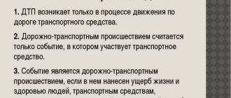 The Road Traffic Rules (hereinafter referred to as traffic rules) give the following definition of an accident (clause 1.2): “An event that occurred during the movement of a vehicle on the road and with its participation, in which people were killed or injured, vehicles, structures, cargo were damaged or other material damage was caused.”